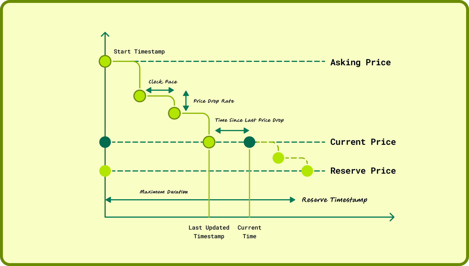 - The auctioneer incrementally reduces the price, awaiting a bid that falls into that range.
