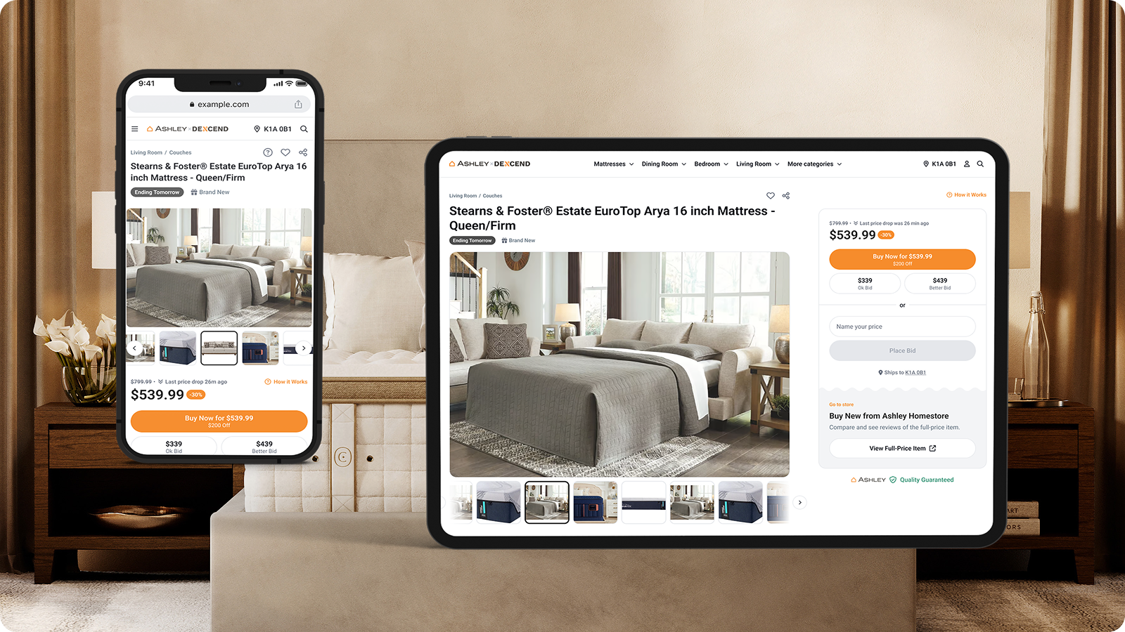 Consider the case of industry-leading retailer Ashley Canada. They partnered with SaySo to launch a co-branded clearance storefront (Ashley x Descend), resulting in a 20% reduction in transportation fees and a 47% 90-day retention rate on clearance sales. Plus, with their excess inventory conveniently displayed online, they can comfortably allocate their people and space back to their best stock.